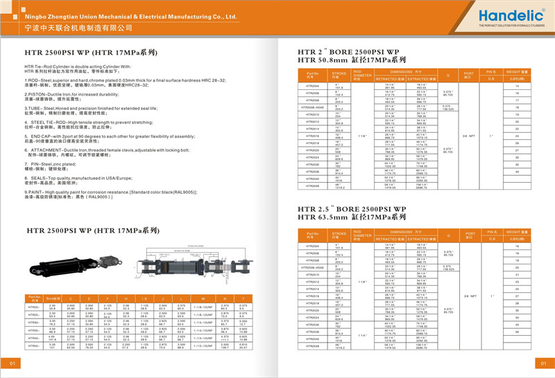 為適應(yīng)市場(chǎng)對(duì)高品質(zhì)工業(yè)標(biāo)準(zhǔn)油缸的需求,中天公司近期推出了“海德力克”品牌系列標(biāo)準(zhǔn)油缸,產(chǎn)品涉及拉桿油缸和焊接型雙作用油缸。該系列產(chǎn)品結(jié)構(gòu)簡(jiǎn)單,客戶可按需求自行選購(gòu)行程、缸徑、工作壓力等并安裝。“海德力克”系列產(chǎn)品全部采用高品質(zhì)進(jìn)口密封件,高品質(zhì)原料,并且嚴(yán)格按照國(guó)際標(biāo)準(zhǔn)精工制作。“海德力克”承諾提供多達(dá)18個(gè)月的質(zhì)量保證,并提供專業(yè)安裝指導(dǎo)和技術(shù)支持,歡迎選購(gòu)。